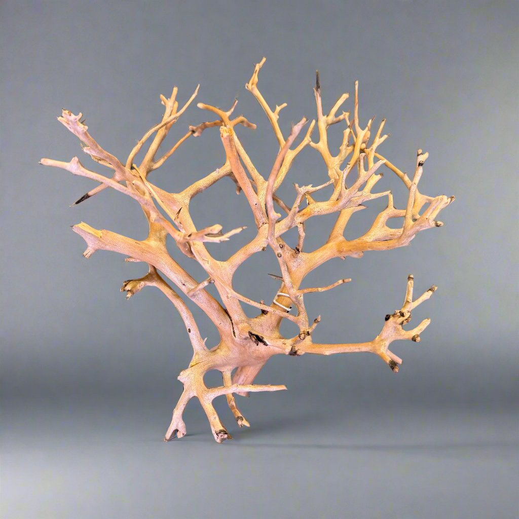 Description: Coral Wood is a unique 'shrub-like' wood, distinguished by its ghostly white, smooth surface. This remarkable appearance comes from removing the bark, revealing its stunning natural form.