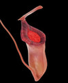 Nepenthes Briggsiana is a striking tropical pitcher plant known for its impressive size and bold coloration. The large, robust pitchers are vibrantly hued, often displaying deep crimson to burgundy tones that gradually fade into a rich, golden-green at the pitcher’s upper portions. Distinctive peristomes (pitcher rims) showcase pronounced ridging and undulating margins, highlighted by glossy shades of deep red or maroon. Each pitcher hangs gracefully from sturdy, vine-like tendrils, complemented by glossy, elongated leaves that add elegance and lushness to its exotic appearance.