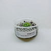 Grow Cup: 5 cm clear plastic cup with ventilated lid to retain humidity during transit. Includes a protective top layer of moss or sterile medium.