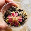 1 young Pinguicula laueana ‘Crimson Flower’ shipped in a grow cup. Size on arrival: approximately 2–4 cm rosette, with colour variation depending on growth stage. Mature rosettes can reach 6–12 cm across, with flowers 2–4 cm wide.