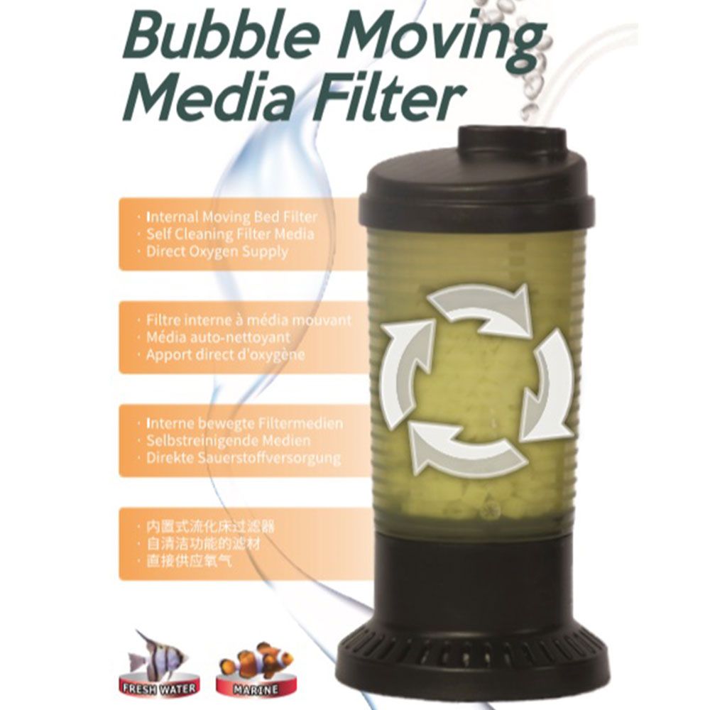 The ZBS-200 is an air-powered aquarium filter that provides clean, but most of all, healthy water in your aquarium. The filter is being used in professional nurseries and also known under the name ‘Moving bed filter’. The name indicated that the filter media move over each other continuously, providing even better filtering. The ZBS-200 filter provides natural processing of waste products in the water, in which substances such as ammoniac, nitrate, and nitrite are converted in an organic manner. The large quantities of air that are being pumped into the filter, provide degassing of these waste products. In this way, the ZBS-200 filter makes sure that the Biological Oxygen Demand (BOD) and Chemical Oxygen Demand (COD) values remain low. These values reflect the quantity of oxygen required to decompose the organic waste particles present in the aquarium. The lower these values are, the cleaner the water in the aquarium is. Using this filter results in a significant slowdown of algae growth, keeping the aquarium extra clean!