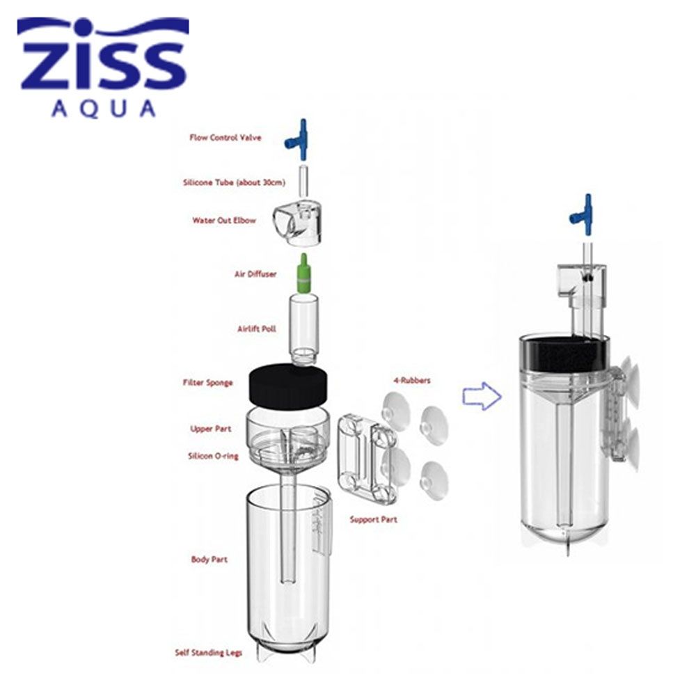 Each egg tumbler has a set with two or four suction cups as mounting system, ziss air regulator, air hose and a ziss air stones. The air stones of Ziss Aqua can be disassembled so they are easy to clean and therefore last much longer than the traditional air stones.