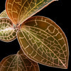 Anoectochilus roxburghii (Jewel Orchid) features velvety dark green leaves traced with intricate, copper-gold veins that catch the light with a metallic gleam. Its rich contrast and delicate network of glowing lines give the plant a regal, jewel-encrusted appearance.