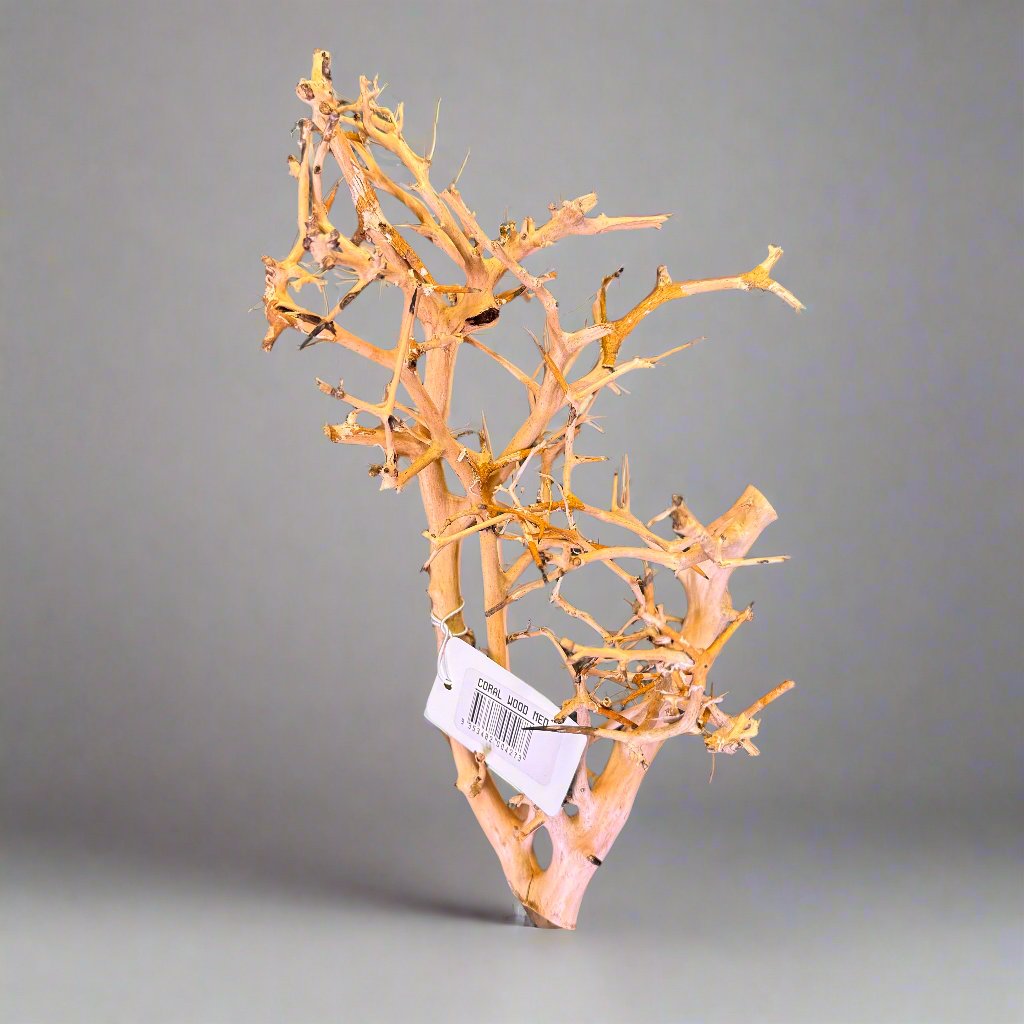Description: Coral Wood is a unique 'shrub-like' wood, distinguished by its ghostly white, smooth surface. This remarkable appearance comes from removing the bark, revealing its stunning natural form.