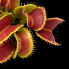 An unusual Venus flytrap with distorted, asymmetrical traps that break from the classic snap-GLrap form. The traps often appear warped or irregular, with uneven lobes and shortened, misshapen teeth. Colour ranges from fresh green to flushed red inside the traps under strong light, giving the plant a striking, almost alien appearance that highlights its mutant character.